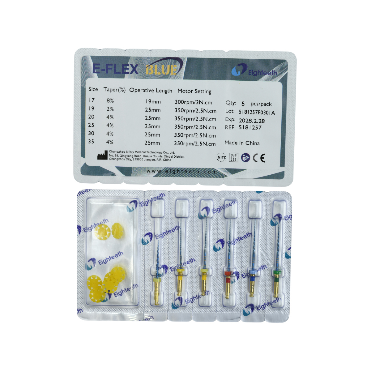 Variety: 5181257: E-FLEX BLUE - Open File(#17/08) L:19mm + (#19/02) + (#20/04) + (#25/04) + (#30/04) + (#35/04) - L:25mm - Assorted - 6pcs/box