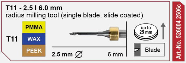 T11 Radius Milling Tool, 2.5 | 6 mm Shank