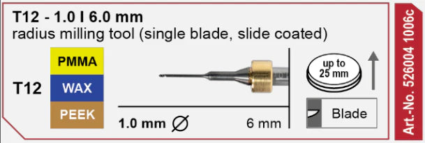 T12 Radius Milling Tool, 1.0 | 6 mm Shank