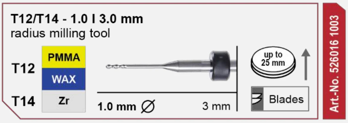 T12/T14 Radius Milling Tool, 1.0 | 3 mm Shank